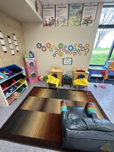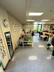 Our day begins with each child being welcomed into the classroom and greeted individually with a smile by Ms. Lynn, the classroom teacher. The children then have free play, where they can explore all areas of the classroom through dramatic play, blocks, book area, sensory table, and tabletop fine motor activities such as play-dough. These activities have been specifically chosen by teachers to enhance learning and development. This time is child-directed but allows students to develop socialization skills, cooperation skills, develop friendships, imagination skills and so many more developmentally appropriate learning skills.
